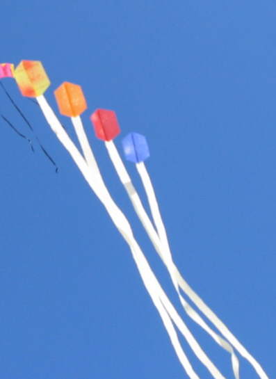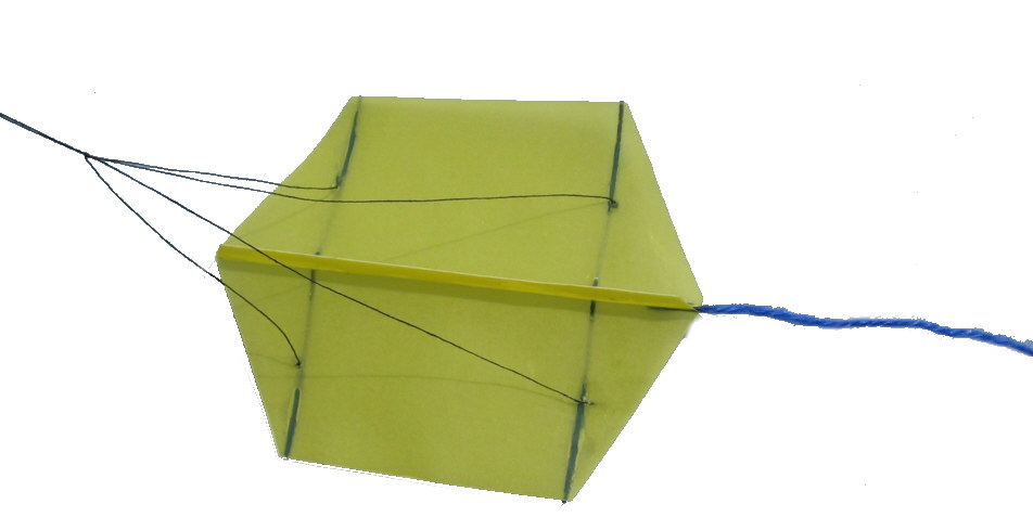 Je vous propose donc un rokkaku de 10 cm de haut en papier calque que certains ont vu voler à la conviviale de Fécamp (photo en vol en train de quatre).